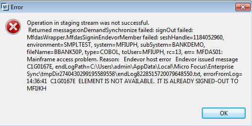 Note: The Enterprise Developer IDE is not blocked during the running synchronization.