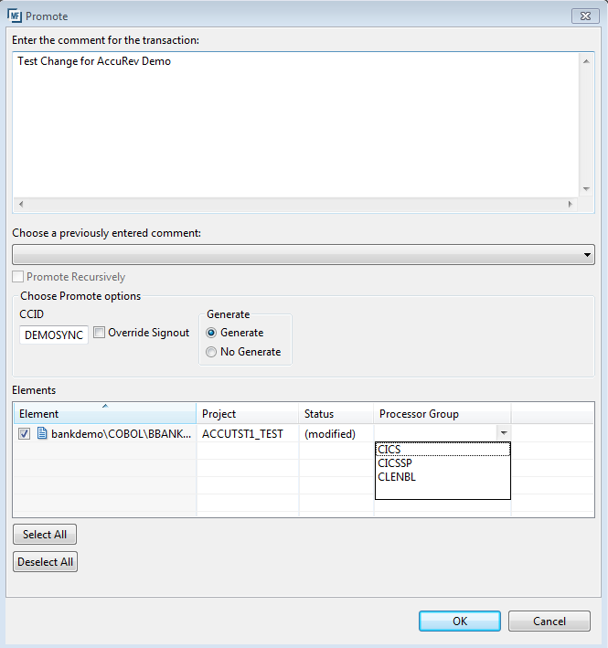 AccuRev workspace files, or use the toolbar promote icon from selected Micro Focus COBOL or PL/I project files linked to