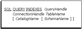 The SQL QUERY INDEXES statement returns a result set that is a list of statistics about a single table and the indexes associated with the table. The result set is identified by the query handle value that is returned.