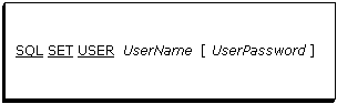 The SQL SET USER statement sets a default user name and user password to be used when connecting to a data source.
