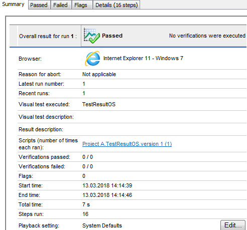 - Enables you to quickly see all aspects of test playback. For additional information, see