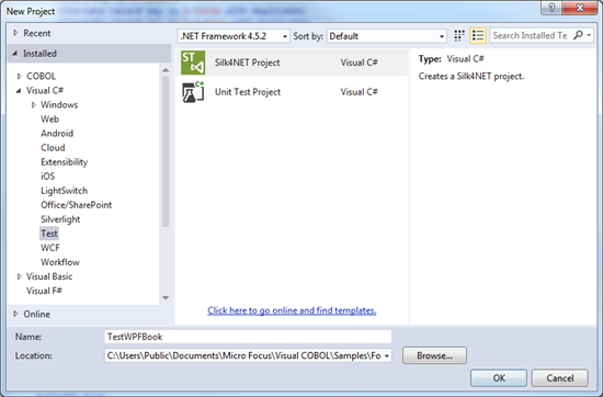 このトピックでは、Silk4NET を使用して Visual COBOL アプリケーションをテストする方法について説明します。ここでは、.NET COBOL のサンプル アプリケーションである WPF Book をテストします。